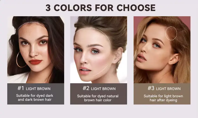 Offers cost-effective dual functionality,replacing separate root cover and hairline filler tools. Enables quick 30-second touch-ups for on-the-go use,with high-color-saturation, 6-8 hour water/sweat-resistant wear.Gentle non-irritating formula suits all skin types,and easy shampoo removal ensures low maintenance.Innovative Features