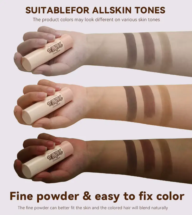 Integrates hair root coverage and hairline filling in one compact stick,with a mineral-based fine powder formula that blends seamlessly without clumping or leaving powder marks.Waterproof and sweat-proof technology maintains long-lasting effect, meeting daily use needs without frequent retouching.Design Highlights