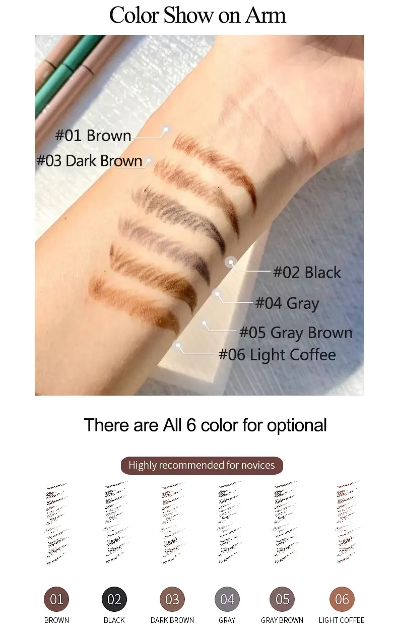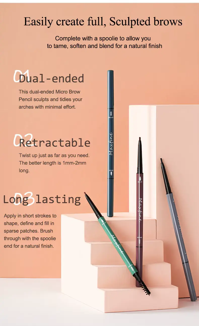 Maxfine 6-Color Double-Ended Eyebrow Pencil,precise brow shaping with a practical,minimalist and versatile style.Features a retractable design plus dual-ended eyebrow pencil and brow brush for efficient makeup application,with 6 shades covering diverse makeup needs.