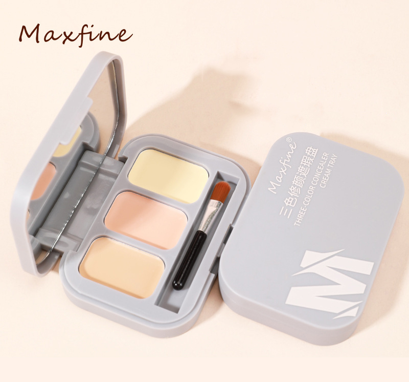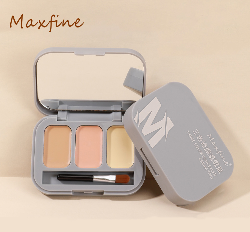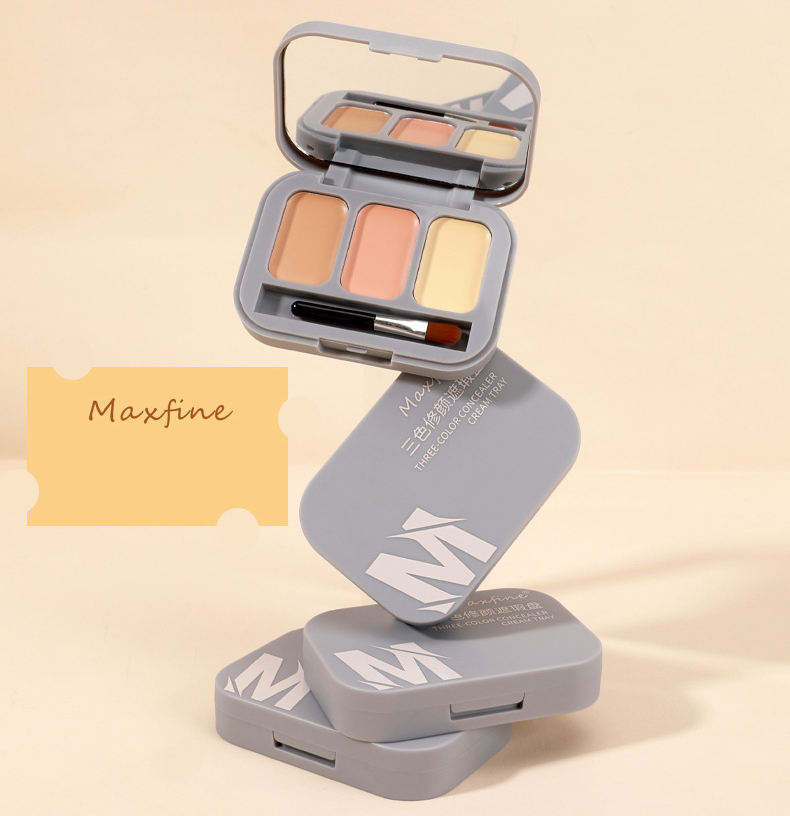 Maxfine three-color concealer features a creamy texture that is silky, moisturizing,and highly extensible.It feels lightweight on the skin, without settling into fine lines or caking.When activated by swirling, it becomes even more nourishing,adhering closely to the skin for long-lasting wear that resists fading or dullness throughout the day.The product offers strong concealing power,effectively covering various blemishes such as spots,acne scars,dark circles,tear troughs.Its three-color design (including natural,soft pink,and bright skin tones)allows for free mixing to meet different concealing and contouring needs.It is suitable for all skin types,it is especially ideal for those needing to cover multiple blemishes while pursuing a natural finish, complementing both daily light makeup and delicate looks to help create a flawless base.
